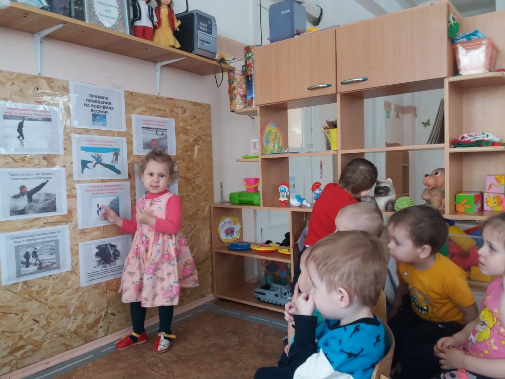 Опубликовано: 17.03.2020С 9 по 16 марта детский сад принял участие во Всероссийской акции "Безопасность детства". Воспитатели провели с воспитанниками и их родителями профилактические беседы на тему "Правила поведения на водных объектах в весенний период", "Правила поведения на льду и спасанию человека". 1, 2, 3, 4, 5, 6, 7