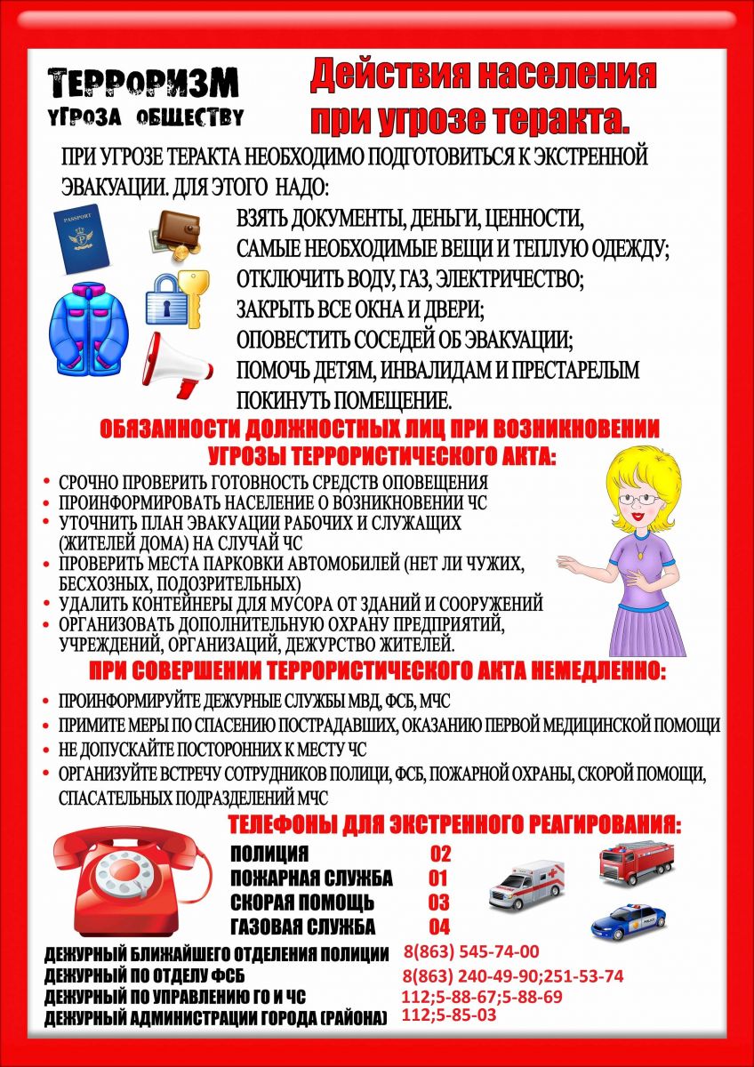 Памятка о действиях педагогического коллектива и воспитанников при возникновении угрозы террористического акта