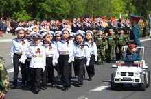 Они прошли строем в форме моряков военно-морского флота. Командир взвода Егорова София. -