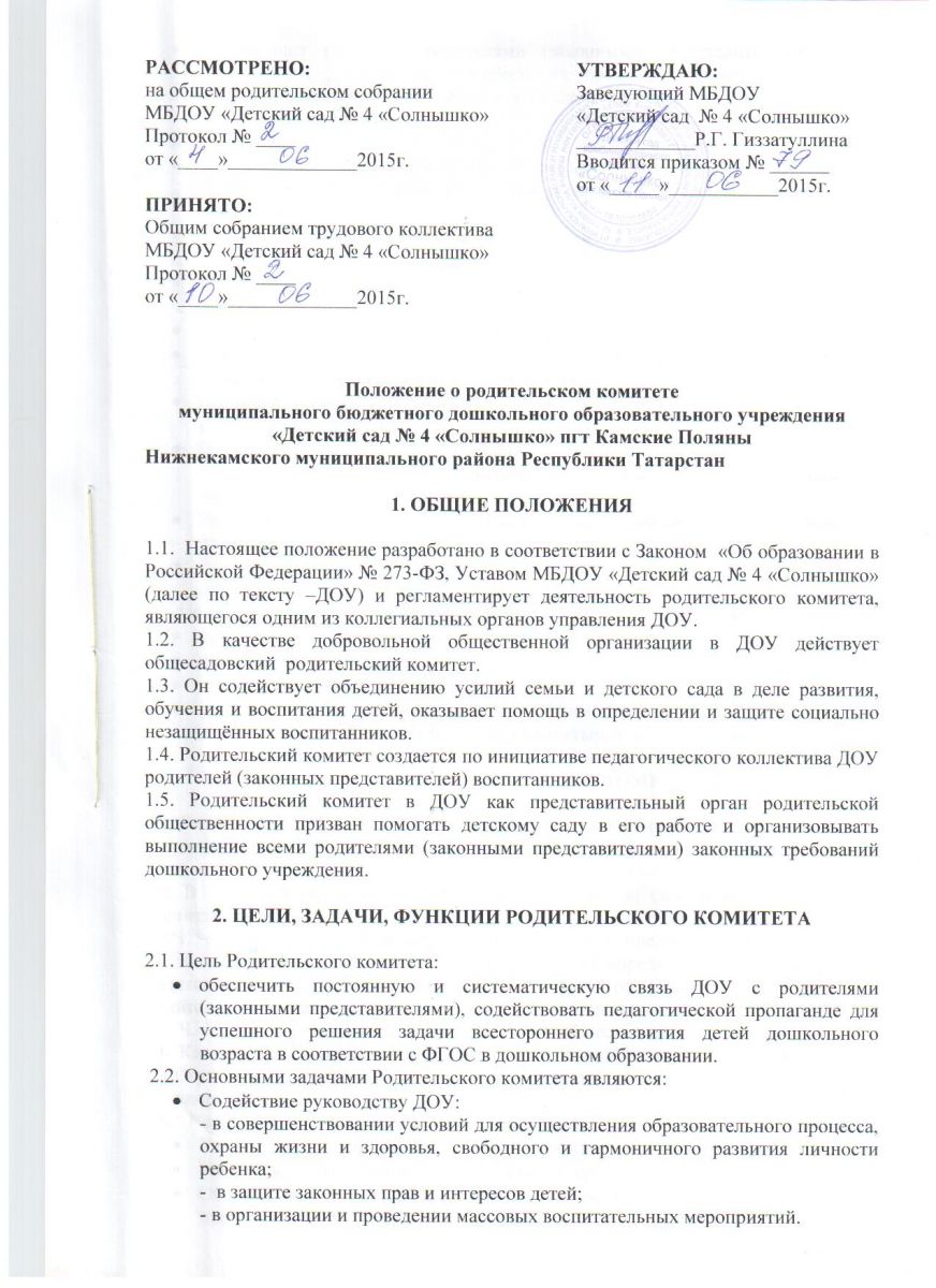 Муниципальное бюджетное дошкольное образовательное учреждение «Детский сад № 4 «Солнышко» пгт Камские Поляны Нижнекамского муниципального района Республики Татарстан