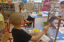 Воспитатель средней группы №1 Светлана Михайловна провела интегрированное занятие, используя нетрадиционную технику рисования - вертикальное рисование на мольбертах из оргстекла. -