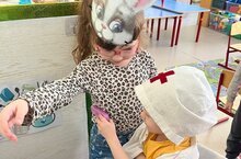 В нашем детском саду отметили этот день: в младшей группе №1 знакомились с творчеством К.И Чуковского и инсценировали сказку "Айболит"