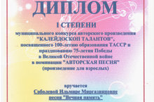 Наш музыкальный руководитель Соболева Ильмира Миргазияновна стала дипломантом 1 степени.