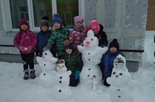 Целое семейство снеговиков слепили сегодня воспитанники подготовительных к школе групп прямо у входа в детский сад!