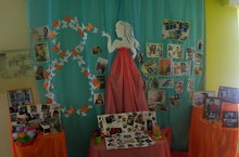 Педагоги в холле организоввали фото выставку из портретов женщин повещенная 8 МАРТА !!!!!