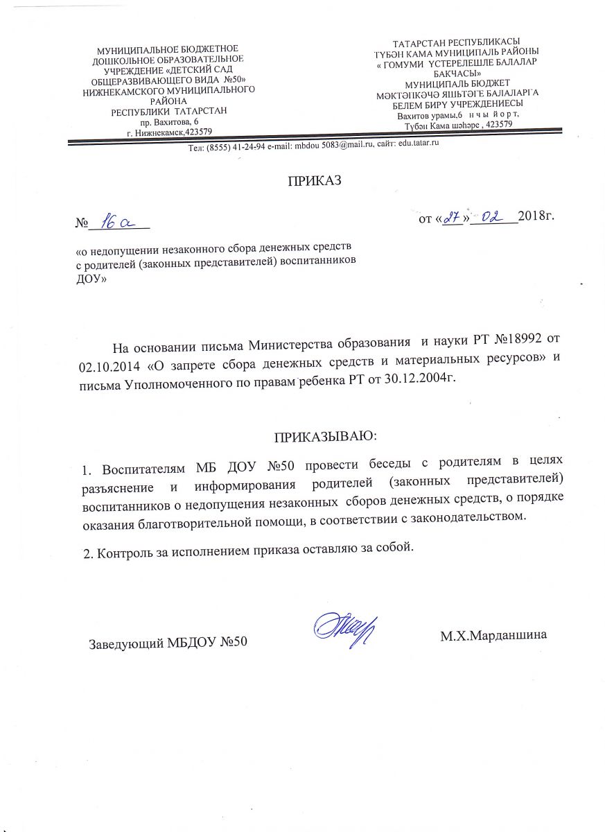 Приказ о мерах по предупреждению незаконного сбора денежных среств с родителей