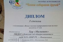 Хор "Малышок" состоящий из наших воспитанников 6-7 лет участвовал В Международном фестивале-конкурсе молодых исполнителей в г. Набережные Челны., с военно-патриотической песней "Вечный огонь"