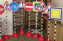 За 2 место в конкурсе по ПДД нашему саду ГИБДД подарили напольные дорожные знаки. чтобы наши воспитанники еще лучше усваивали правила дорожного движения.