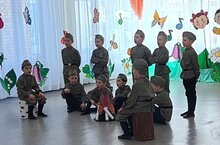 В рамках празднования 80-летия Победы в детском саду проведено много разных мероприятий в которых задействованы были сотрудники детского сада, дети и их родители. Празднично украшены окна в группах, оформлена Стена памяти фотографиями участников ВОВ. В торжественной обстановке прошли утренники в старших и подготовительных группах: дети пели гимн России и песни военных лет. Воспитанники подготовительной группы с воспитателями Васкиной А.Н. и Ганиевой Н.Ф., родителями, возложили цветы к Вечному огню и под руководством музыкального руководителя Батаевой Н.А. спели песню "Вечный огонь". В акции "Георгиевская ленточка" раздали жителям города более 40 бутаньерок. Бессмертный полк прошел под красным знаменем, с портретами участников Великой отечественной войны, В шествии приняли участие педагоги, дети средних, старших, подготовтельных групп и родители воспитанников. 9 мая на площали Лемаева мальчики подготовительной группы приняли участие в концерте с песней "Эх, дороги".