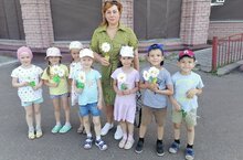 Воспитанники и педагоги нашего детского сада приняли участие в акции "Подари ромашку", приуроченной празднику День семьи, любви и верности. Ребята раздавали прохожим символ праздника - ромашки, сделанные своими руками, со словами поздравления и приглашения на праздник, который состоится сегодня в парке "Семья" в 17.00.