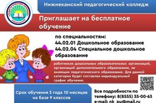 Нижнекамский педагогический колледж приглашает на бесплатное обучение.