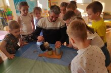 В старшей группе № 8 прошёл мастер -класс, который провёл папа Азалии – Курбанов Разиль Ханифович. Он подробно показал и рассказал этапы создания «Окопных свечей» для наших военных на СВО. Дети с интересом слушали и помогали :заполнять банки картоном, измельчали парафин. Дети запомнили последовательность создания свечи, повторили технику безопасности. Ребята поблагодарили за интересный мастер -класс.
