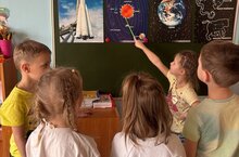 С детьми дошкольного возраста воспитателями были проведены тематические беседы «Звезда Солнце и планеты вокруг нее», «Юрий Гагарин – первый космонавт», «Что такое спутники, ракеты и МКС?», «Камни, которые падают с неба» с рассматриванием иллюстраций и альбомов «Космос и мы», «Великие космонавты», «Солнечная система», «Космическая техника». С детьми подготовительных к школе групп в музыкальном зале было проведено тематическое развлечение «Путешествие по планетам» инструктором по физической культуре.