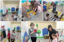 Цель: Расширять знания о правилах поведения на улице: объяснить алгоритм перехода проезжей части по нерегулируемому переходу. Учить решать на модели дорожные ситуации и прогнозировать своё поведение в тех или иных обстоятельствах. Воспитывать у детей внимание, сосредоточенность. Развивать игровую деятельность, предложив различные варианты развития сюжета.