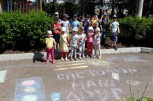 в нашем детском саду прошел конкурс детских рисунков на асфальте. Провела его воспитатель Коробейникова Н.М. для общеразвивающих групп № 1,2,9.