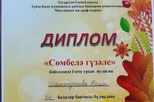 "Сөмбелә гүзәле- 2020" дип исемләнгән шәһәркүләм бәйгедә җиңү яулаган, ягъни 1 нче урынга ия булган кызыбыз - Шәмсетдинова Найләне, шулай ук аның әти-әнисен, тәрбиячеләрен ихлас күңелдән тәбрик итәбез. Киләчәктә тагы да зурдан-зур уңышлар юлдаш булсын!!!