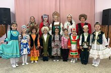 Дети вместе с воспитателем русского и татарского языка Халидой Ахметовной закрепляли знания о русской национальной одежде, фольклоре, устном народном творчестве и русских народных играх.