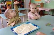 Друзей для зайчика нашли ребята ясельной группы 12. Как же детям нравятся сенсорные игры: когда можно трогать, сыпать, набирать в кулачок. Кстати, манная крупа полезна не только как каша, но и для развития мелкой моторики, снятия эмоционального напряжения. -