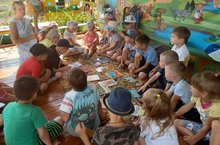 Интересно и продуктивно прошла встреча детей старшего возраста с представителями детской библиотеки. Дошкольники посетили выставку детских книг, рассказывали друг другу сказки, делились впечатлениями о героях произведений. А потом с удовольствием играли в народные игры.