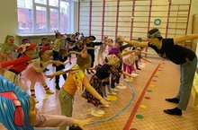 С самого утра дети встречали друг друга наряженные в костюмы, приготовленные накануне праздника. Утренний флешмоб позабавил детей интересными упражнениями и нарядами. Весь день были в группах шутки, розыгрыши и веселое настроение.