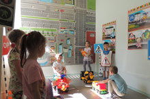 Закрепление знаний дошкольников по правилам дорожного движения особенно эффективно осуществляется в процессе игровой деятельности. Так, дети старших групп с увлечением обыгрывали дорожные ситуации на макете города. В ходе игры воспитанники имели возможность побыть пешеходами и водителями. Подобные игры с обучающими задачами проводятся на прогулках, а также педагоги знакомят детей с ПДД через дидактические игры.