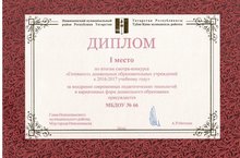 По итогам конкурса "Готовность дошкольных образовательных учреждений к 2016-2017 учебному году", наш детский сад занял 1 МЕСТО, за внедрение современных педагогических технологий и вариативных форм дошкольного образования.