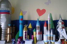 В старшей группе № 9 оформленна выставка поделок, сделанных совместно с родителями "Наш космический корабль" .