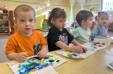 Необычным способом создавали свой рисунок дети 1 и 12 групп. Ребятки водили пальчиками по краскам и получали причудливые формы. На занятии дети закрепляли основные цвета, учились рисовать линии, круги.