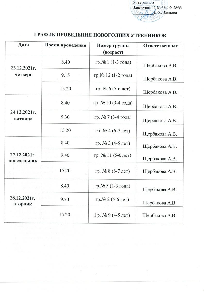 Опубликовано: 14.12.2021Уважаемые родители! С 23 декабря по 28 декабря 2021 года в нашем детском саду проводятся новогодние утренники.