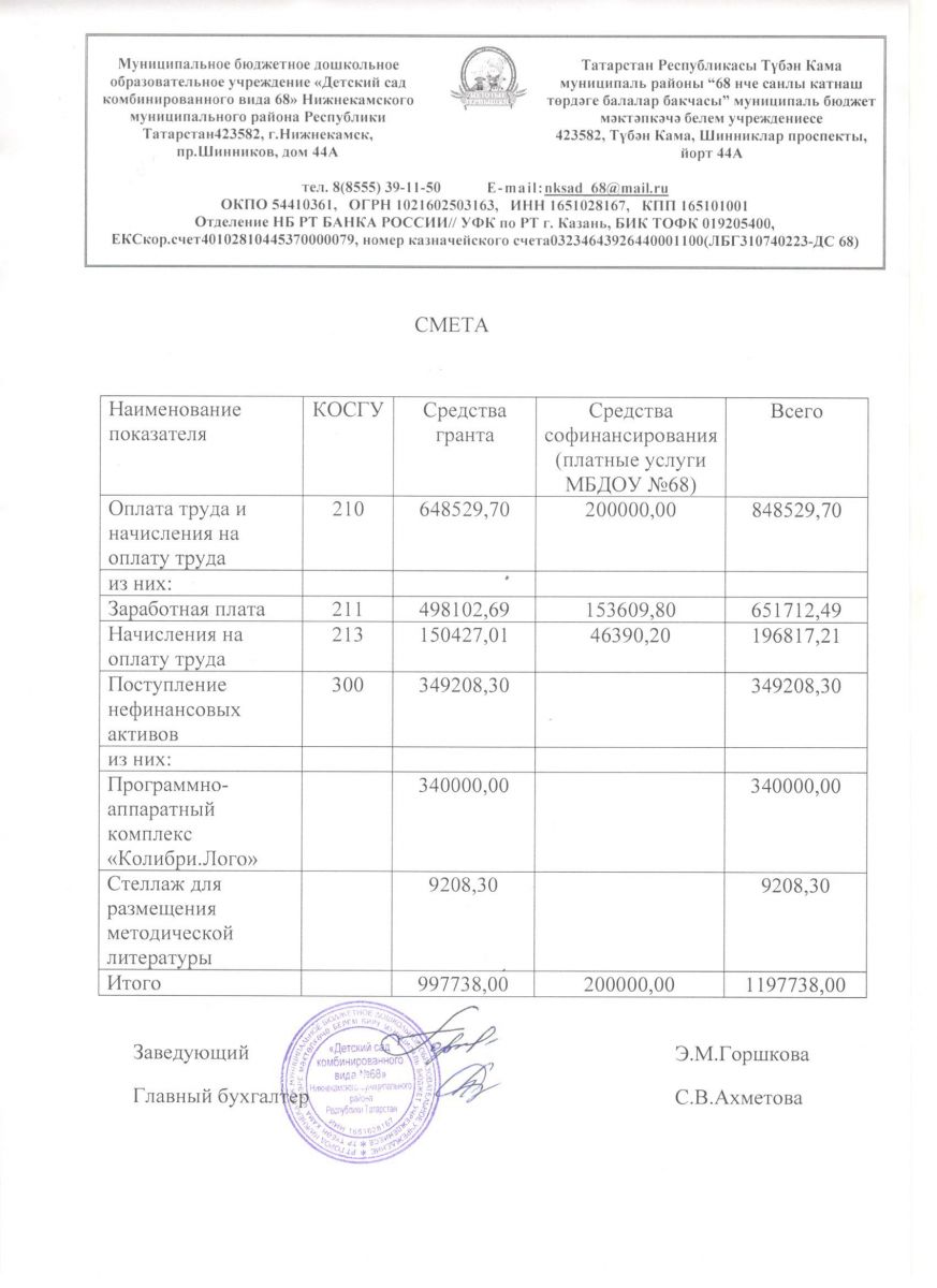Муниципальное бюджетное дошкольное образовательное учреждение «Детский сад комбинированного вида №68» Нижнекамского муниципального района Республики Татарстан/Татарстан Республикасы Түбән Кама муниципаль районы «68нче санлы катнаш төрдәге балалар бакчасы» муниципаль бюджет мәктәпкәчә белем учреждениесе