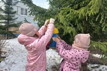 Дети, воспитатели и родители организовали на территории детского сада настоящую "Птичью столовую" - принесли кормушки, скворечники, разнообразный корм для птиц: пшено, семена подсолнечника, сало, попросили своих пап помочь прикрепить скворечники, вообщем, сделали все, чтобы пт"ПОМОГИ ПЕРНАТЫМ"ицам было хорошо, вкусно и комфортно! -