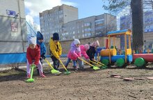 Воспитанники средней группы №6 активно приводят в порядок свой прогулочный участок!