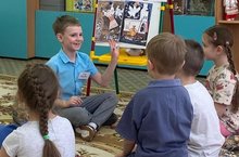 Ведущие рассказали детям о жизни и творчестве великого поэта, познакомили с книжно-иллюстративной выставкой "Путешествие в страну Тукая".