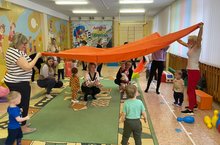На базе нашего детского сада прошёл отборочный тур муниципального конкурса «Фестиваль детского творчества». Коллектив «Росинки» продемонстрировал жюри номер «Ой, ниточка».
