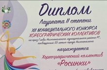Коллектив «Росинка» с номером «Пожижжим» был отмечен Дипломом Лауреата 2 степени на 12 муниципальном конкурсе хореографических коллективов на Приз Главы Нижнекамского муниципального района РТ