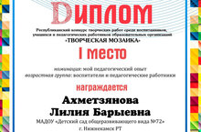 Муниципальное автономное дошкольное образовательное учреждение "Детский сад общеразвивающего вида №72" Нижнекамского муниципального района Республики Татарстан
