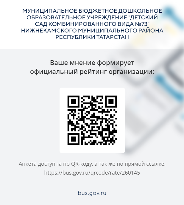 Муниципальное бюджетное дошкольное образовательное учреждение "Детский сад комбинированного вида №73" Нижнекамского муниципального района Республики Татарстан