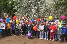 Сегодня воспитанники детских садов №73 и №72 вместе с педагогами торжественно прошли по территории детского сада №72, участвуя в акции "Бессмертный полк", гордо неся в руках портреты прадедушек и прабабушек, родственников-фронтовиков, 109 воспитанников нашего детского сада приняли активное участие.