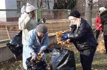 Вооружившись инвентарем, коллектив детского сада вышел на территорию, чтобы провести уборку осенней листвы.
