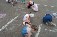 Сегодня в нашеи детском саду мы отметили праздник "День защиты детей". Дети веселились, играли, танцевали и рисовали на асфальте.