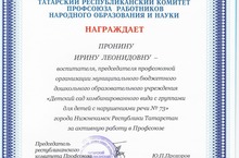 Награждение Почетной грамотой профкома детского сада 11.04.2014