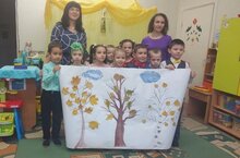 На третьей площадке воспитатели групп попросили украсить деревья осенними листьями.