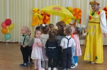 В конце праздника все собрались снова в музыкальном зале, где увидели красавицу Осень, снова пели песни, рассказали стихотворения и дружно открыли сундучок с подарками!Всё прошло весело и здорово!