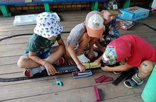 6 августа отмечается день железнодорожника. В этот день детском саду ребята познакомились с железнодорожными профессиями и выступали в роли работников железной дороги: выкладывали из рельсов железную дорогу, «выстукивали неполадки молотком», давали разрешающий сигнал поезду, управляли поездом, тем самым закрепляя знания о железнодорожных профессиях.