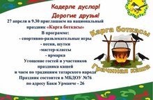 27 апреля в 9.30 приглашаем на национальный праздник "Карга боткасы".