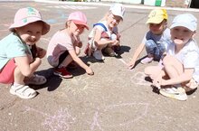 Нам гулять совсем не лень!В летний период в нашем детском саду продолжается летняя оздоровительная работа. Вот и наши воспитанники первых младших групп играют в футбол, строят тортики из песка, также любят играть и кататься на гоночных автомобилях.