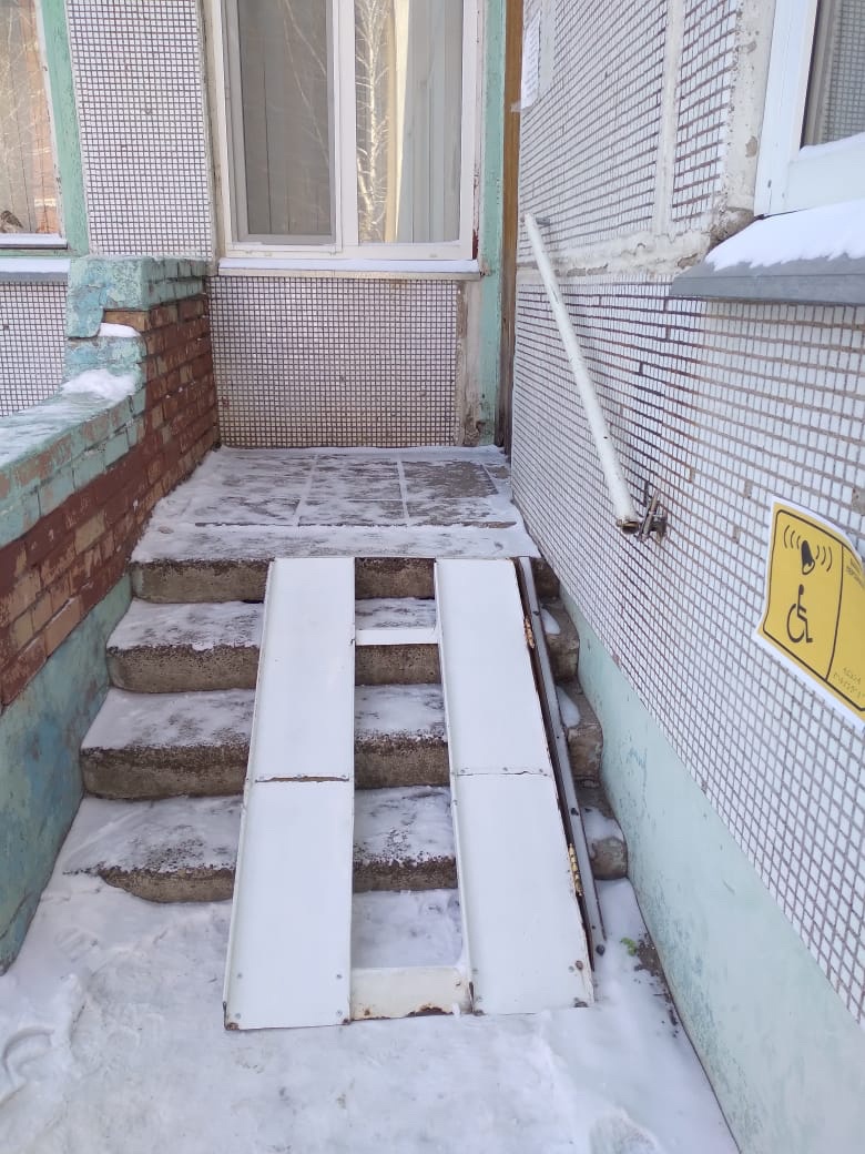 Доступ лиц с нарушением опорно-двигательного аппарата осуществляется через вход, оборудованный пандусом., на первый этаж МБДОУ «Детский сад общеразвивающего вида №76» НМР РТ