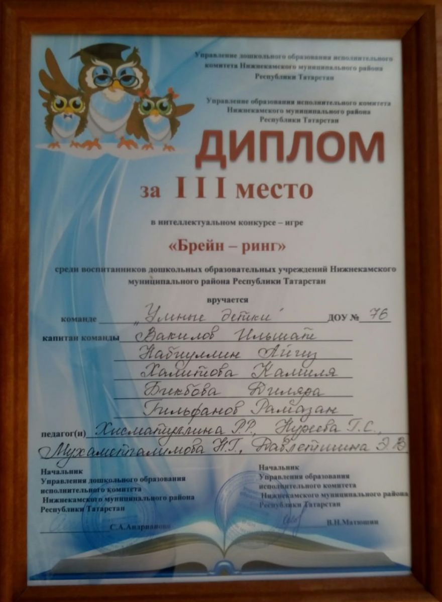 Муниципальное бюджетное дошкольное образовательное учреждение «Детский сад общеразвивающего вида №76" Нижнекамского муниципального района Республики Татарстан