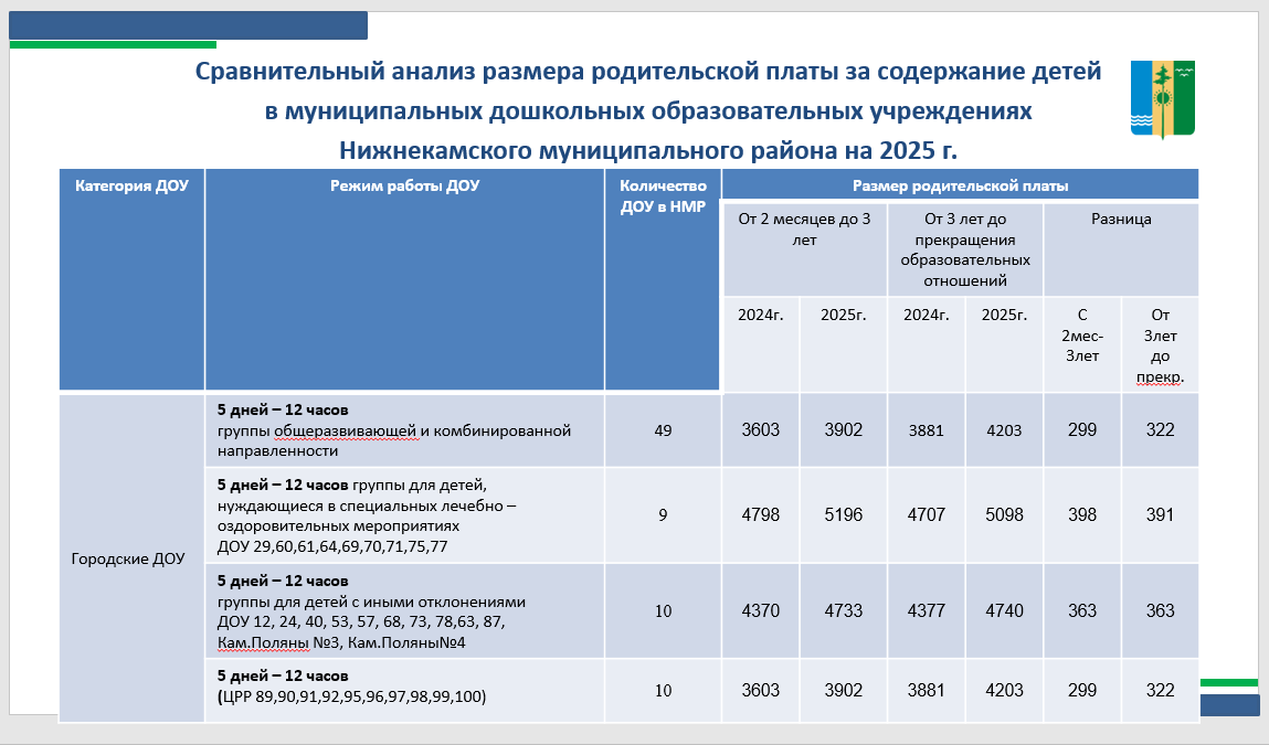 Сравнительный анализ размера родительской платы 2024 г. и 2025 г.
