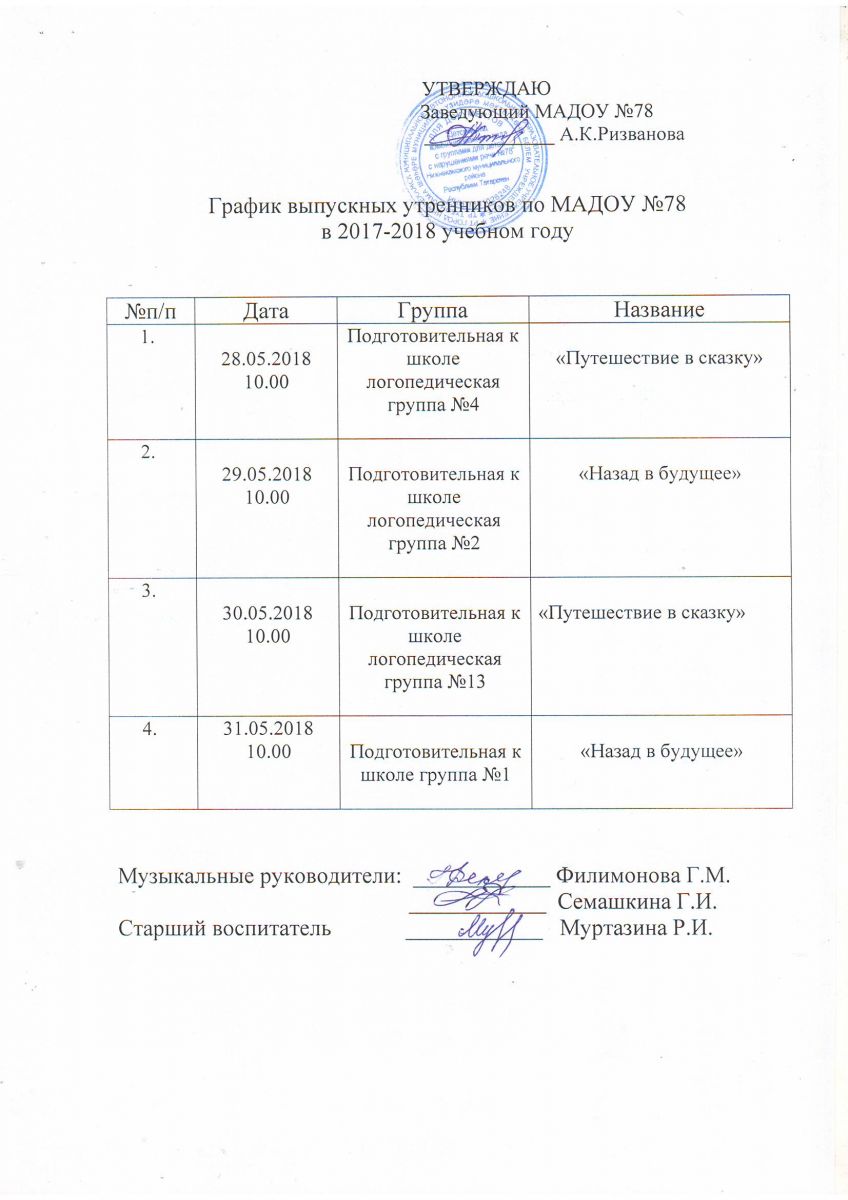 График выпускных утренников 18.05.2018